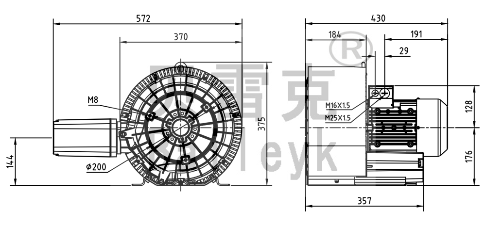 最大風(fēng)量:230m3/h 最大正壓:360mbar 最大負(fù)壓:290mbar 防護(hù)等級(jí):IP55 噪音:72db 重量:35Kg |