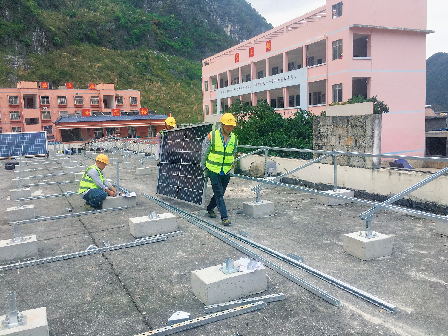 2月18日,在板蘭村村委前的廣場上,幾輛運(yùn)輸車到來的馬達(dá)聲劃破了清晨的寧靜,車上層層疊疊的金屬框架和光伏板整齊地排列著。桂冠電力公司的職工們沐浴著南國春光,熱火朝天地開始了嶄新的“光伏”振興工作……