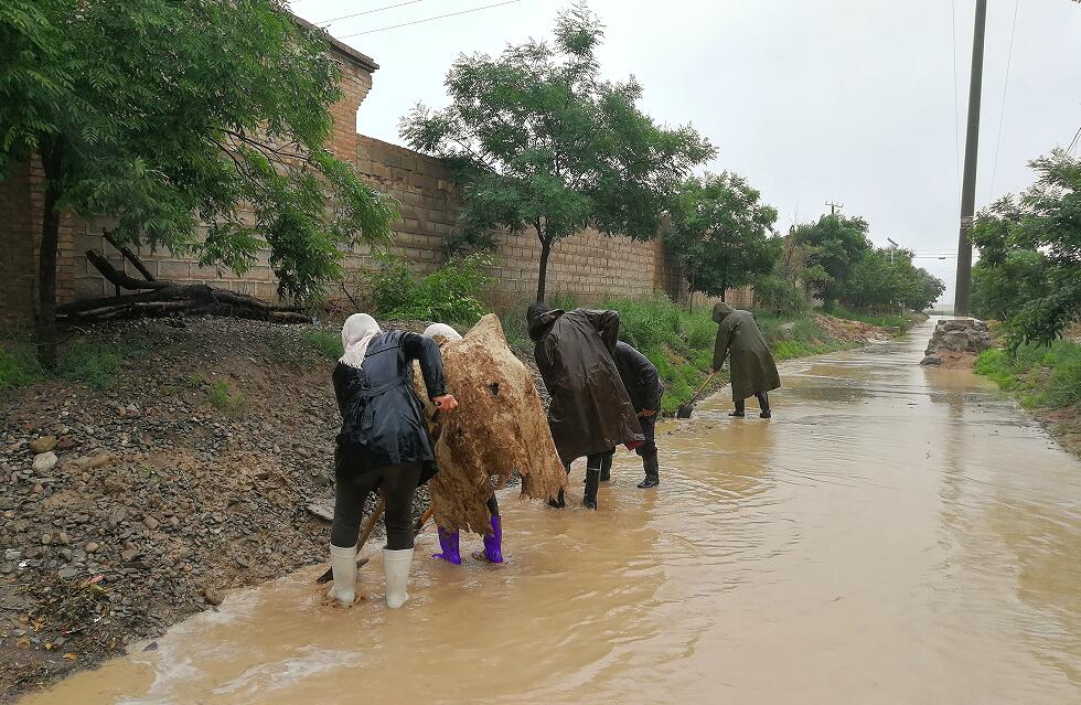 距離黃大媽家20多米處,水就已經(jīng)沒到膝蓋。其他好多村民拿著盆子從家里往屋外舀水,但幾乎起不到作用,路面上的積水還是不斷地往屋里倒灌。我蹚著水走到十字路口,雨水已經(jīng)沒到我的大腿。此時(shí)我突然發(fā)現(xiàn)這里比別處都低,雨水無法排出,積水從四面全涌過來。我趕緊把黃大媽和其他村民叫了過來,鋤頭鐵鍬一起上。挖了半天,總算有一條排水溝。可是,距離較遠(yuǎn),水溝還是有點(diǎn)高,只排走了部分積水。