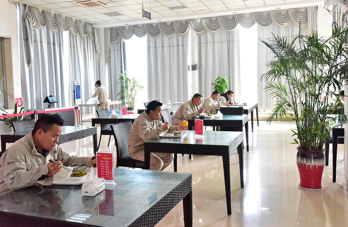 為保證公共場所衛(wèi)生安全,該公司嚴格落實封閉場所戴口罩、測溫、消毒等措施,職工食堂內(nèi)分批分時就餐、同向就坐等以“獨”攻毒防控措施,已然成為蘇熱人的行動準則。